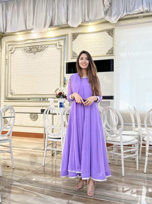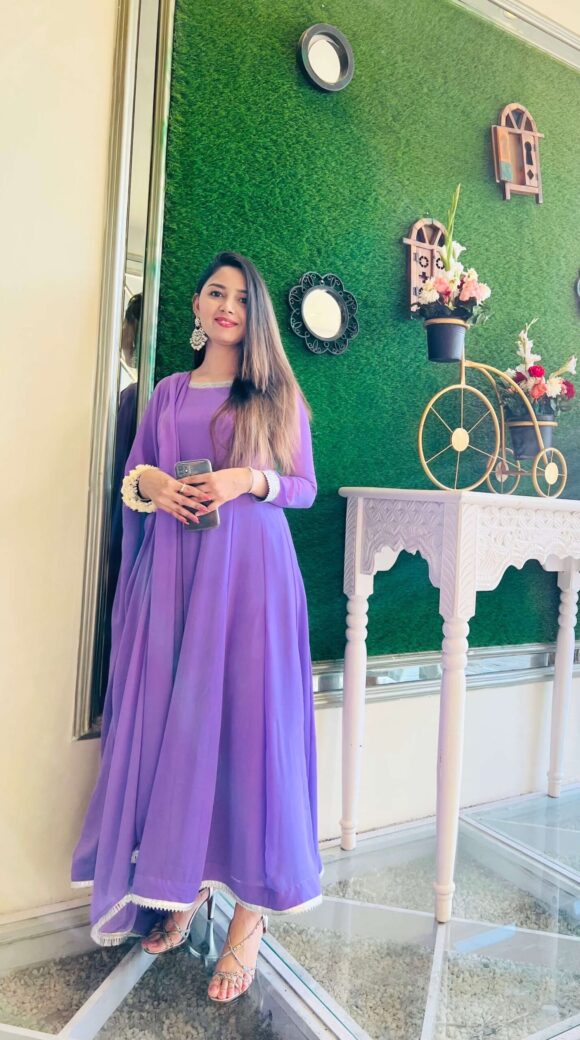 Grace meets subtle glam in our Lilac Pishwas, crafted from soft, flowy chiffon for an effortlessly elegant silhouette. This feminine piece features: